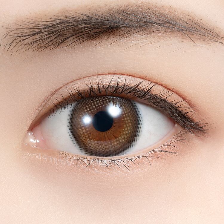 さりげなく瞳の印象を引き立てるうるつやニュアンスカラーの裸眼風レンズ。